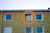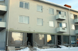 Huset på Bredgårdsgatan i centrala Strömsund ska rivas. Men nu får hemlösa tillfälliga bostäder i en trappuppgång. Foto: Holger Persson |