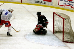 Strömsund hade inga problem alls att spika seriesegern i division 2. 15-1 mot Svenstavik i går gjorde nordjämtarna klara för Fortsättningsserien efter nyår. - Nu trappar vi upp träningen, säger Strömsunds Roger Allberg. Foto: Holger Persson |