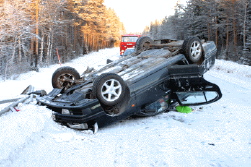 Anders och Karin Millgård med sonen Erik var på väg mot Östersund när Karin tappade kontrollen över bilen som voltade. Familjen hade änglavakt och klarade sig med bara lindrigare skador. Foto: Holger Persson |