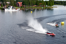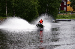 Entusiaster träffas i Strömsund för att köra båt LT 2004-07-17 Entusiastiska män med "galoscher" lockade massor av publik