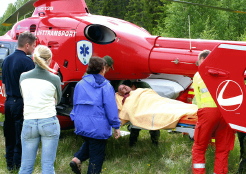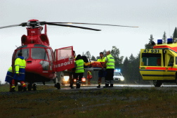 han bärs in i helikopter för vidare transport till Östersunds