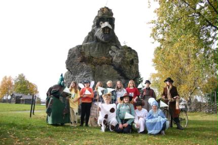 Fjällsjöskolan Backe årskurs 7 framför Jätten