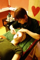 Helena Abrahamsson ger Stina Lind en provapå-ansiktsbehandling.