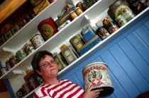 Maj-Kristin Reinemyr i köket med sin burksamling. Foto: Holger Persson |