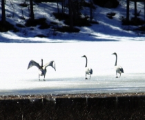 2005-04-20 Vårtecken på många sätt Våren är här och nya vårtecken visar sig dagligen i naturen för den uppmärksamme. Tussilagon lyser gul efter vägkanterna. Skotersäsongen är över och skoterlederna stängs. Tjälskotten blommar upp i våra grusvägar. Tranorna har anlänt och krokusarna blommar. Påskliljorna kämpar tappert för att komma igenom lövhögen som skyddat dem genom vintern. Visst kan våren visa sig i många olika skepnader. |
