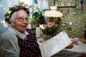 Lydia Larsson fick sin önskan uppfylld på 100-årsdagen: Gratulationer från kungen och drottningen. Text/Foto: Holger Persson |
