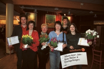 Johannes och Ida Collin, Hervor Dahlén, Inger Långström, Linnea Forsberg och i bakgrunden Hampus Engström som hämtade priset åt Christina Svensson som inte kunde närvara. |