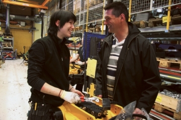 Eleonor Dyvinger en av Engcons 100 anställda i Strömsund tillsammans med grundaren och ägaren Stig Engström som snart vunnit alla de företagsspriser som går att vinna. Foto: Holger Persson |
