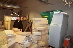 70-80 ton papper per år mals till briketter och eldas upp i värmeverket. "Det är en kanongrej och vi måste ha den för all mängd papper vi hanterar här", säger Stefan Persson på Itella information AB. Text/Foto: Holger Persson |