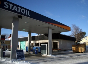Statoil i Strömsund rivs Nu river Statoil butikslokalen i Strömsund, till många ortsbors förtret. Därmed går en epok i graven och kvar blir en tom plan yta mitt i centrum. Det var tänkt att Janne Ottosson skulle sätta grävmaskinsskopan i väggen den här veckan men hinder uppstod. I en av innerväggarna misstänks det finnas asbest. Bitar av väggen har skickats iväg för analys och provsvaret kommer i början på nästa vecka. Det svaret bestämmer om rivningen kan fortgå eller om en saneringsfirma måste komma och sanera innan rivningen fullföljs. Angående nedläggningen och rivningen av butikslokalen säger Magnus Wikudd, regionchef på Statoil. - Lönsamheten i branschen är inte god och det här gör vi för att kunna vara kvar på orten och få en lönsamhet i det hela. Långsiktigt finns inte möjlighet till en bemannad station i Strömsund med de förutsättningar som finns idag. Det vi nu gör är att vi bygger om till en modern automatanläggning för att möta framtidens krav. Vi städar upp efter oss och frigör ytor så att det ska bli tydligt att det är en automatanläggning.