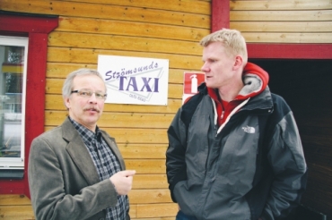 Det blir lite lustigt om Strömsunds taxi ska åka in till Östersund för att tanka gas, säger Hans Weinehall, regionsansvarig för Svenska taxiförbundet. Här tillsammans med Douglas Forsberg, taxiföretagare. Text/Foto: Holger Persson |