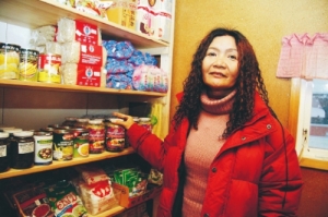 Pranee Khempornyib visar sitt sortiment av thailändska matvaror. Hon har även en del frysta varor. Text/Foto: Holger Persson |