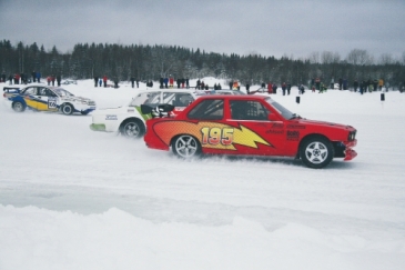 Första två heaten kördes i rikligt snöande därefter