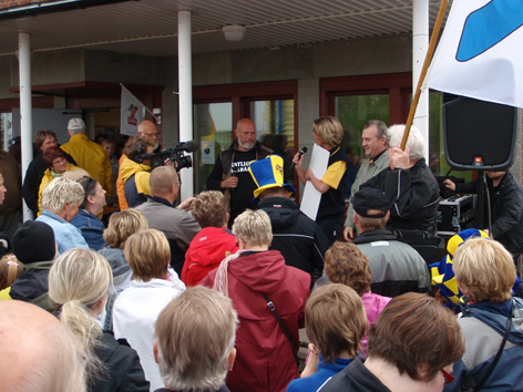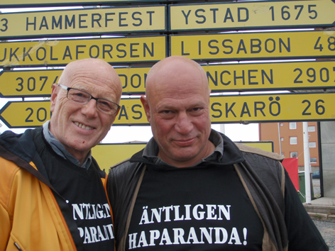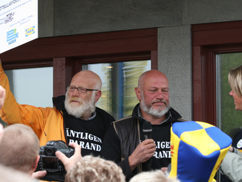 Haparanda 090606 Ett steg i taget! Robert Aschberg och Gert Fylking har avslutat sin vandring mellan Ystad och Haparanda. De har gått 190 mil på 100 dagar. De har samlat in nästan 6 miljoner kronor till Cancerfonden under sin vandring över Sverige där målet har varit att rikta uppmärksamhet mot prostatacancer och behovet av forskning kring sjukdomen. 55 675 kronor från IKEA i Haparanda.. Vad vill ni säga till dem som följt er vandring? Tack för stödet och hoppas vi har bidragit till att höja medvetenheten kring prostatacancer. |