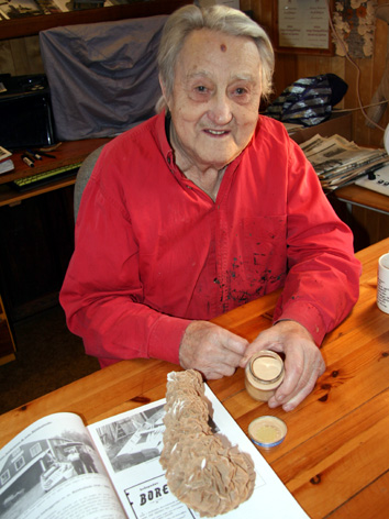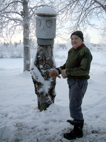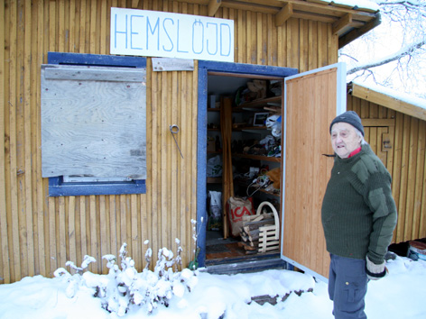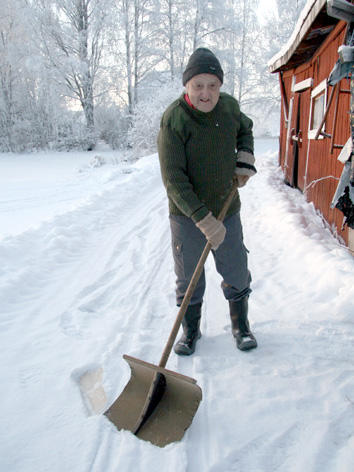 som skulle användas i flottarrännet i Långsele. Det började på 1960-talet och höll på i 15- 20 år. Flera vintrar stod Erik med fyra anställda och bara tillverkade snöskyfflar i björkplywood. Från Gävle och upp till Riksgränsen använde SJ skyfflarna för att hålla spårväxlarna fria från snö. Eriks meritlista kan göras väldigt lång. Amatör astronom har han varit sen litet barn. Han har byggt eget teleskop som han själv slipat in glaset i. Byggt eget kikarhus ute på åkern. Avbildat stjärnhimmelen på plåttavlor och gjort illustrationer till Harry Martinson Aniara. Erik berättar att han tillsammans med sin fru Solveig har