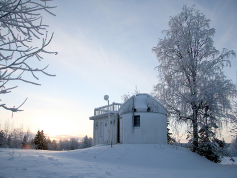 På en liten kulle på åkern står Eriks kikarhus där han tillbringat många stjärnklara nätter. |