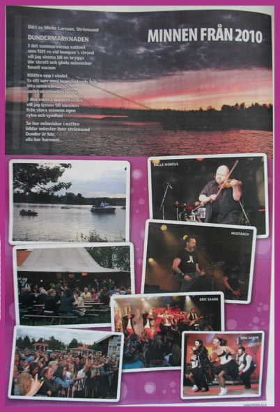 Dikt av Micke Larsson, Strömsund Dundermarknaden. "I det sommarvarma vattnet Klättra upp i vimlet I den vackra dunderkvällen Se hur människor i natten |