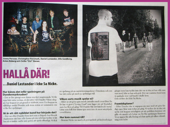 HALLÅ DÄR ...Daniel Lestander i Icke Sa Nicke. Hur känns det inför spelningen på Dundermarknaden? - Det är lite pirrigt men känns mycket inspirerande. Vi får repa hårt sista veckan, så det sitter till Dunder. Våran sångare har hoppat av på grund av tidsbrist, men Cici hoppar in tillfälligt under Dunder och även resten av sommaren om vi får fler spelningar.