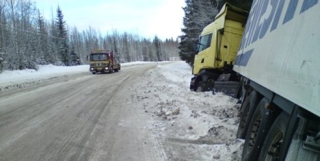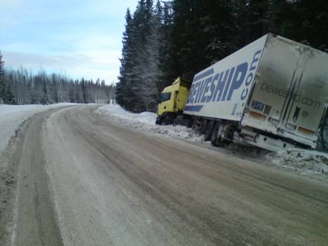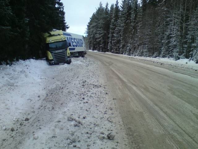 Lastbil i diket på E45 |