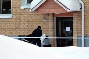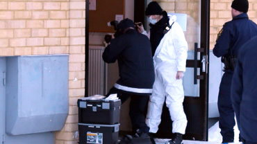 Området spärrades av och polisens tekniker gjorde en brottsplatsundersökning. Foto: Holger Persson. |