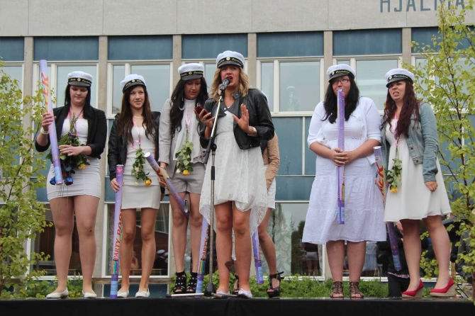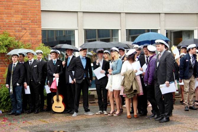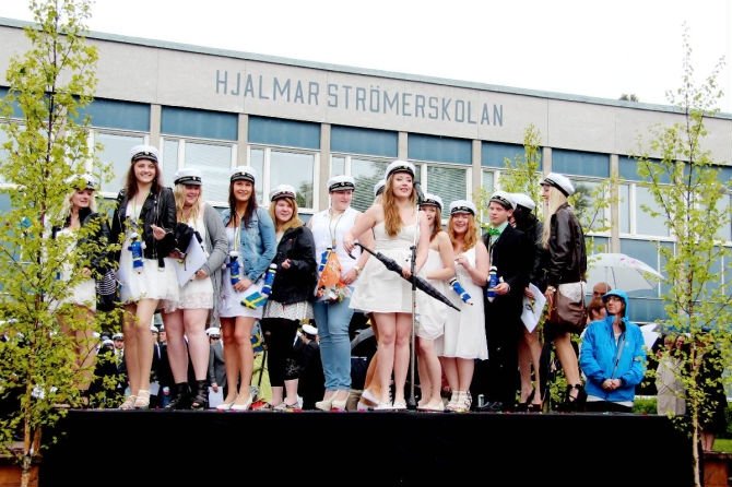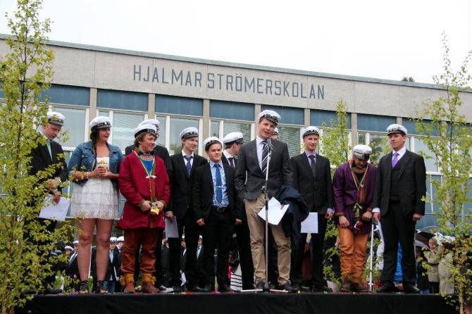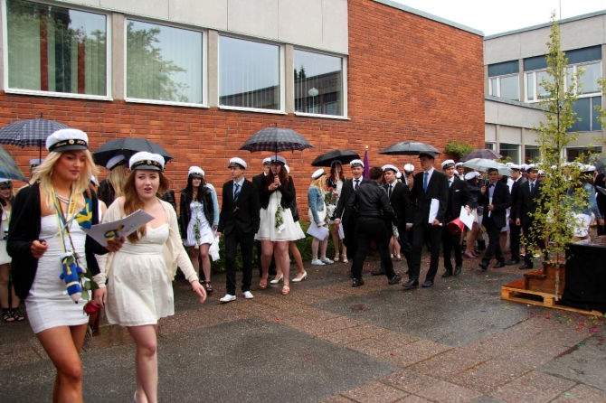 Studenten i Strömsund Regnigt men lyckligt Eleverna vid Hjalmar Strömmerskolan i Strömsund
