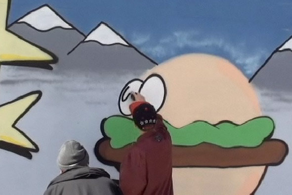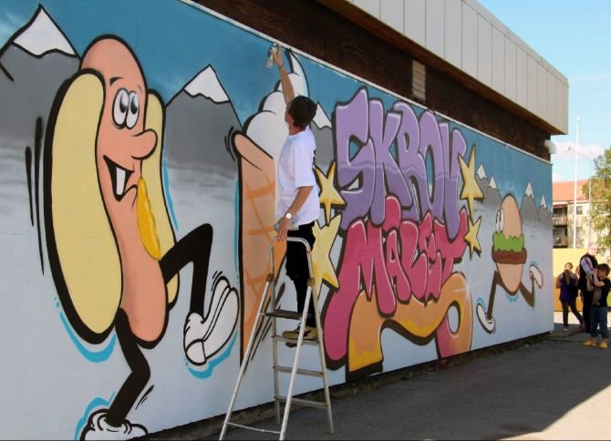 Urban gatukonst i Strömsund Urban Arts pryder vägg på gatukök En grillkiosk i Strömsund